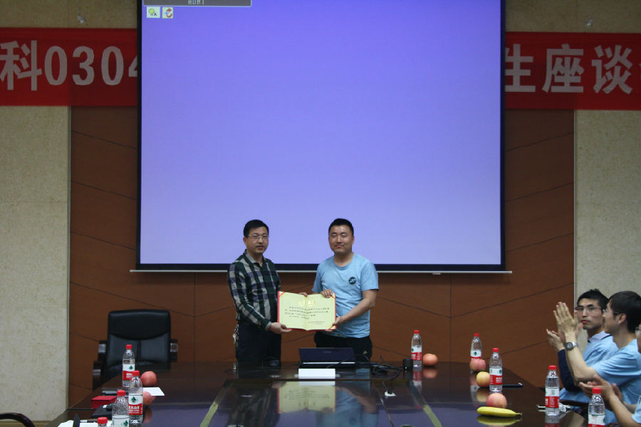 公司党委书记蔡建文向计科0304班班长佟玉琢颁发“计0304树”捐赠证书