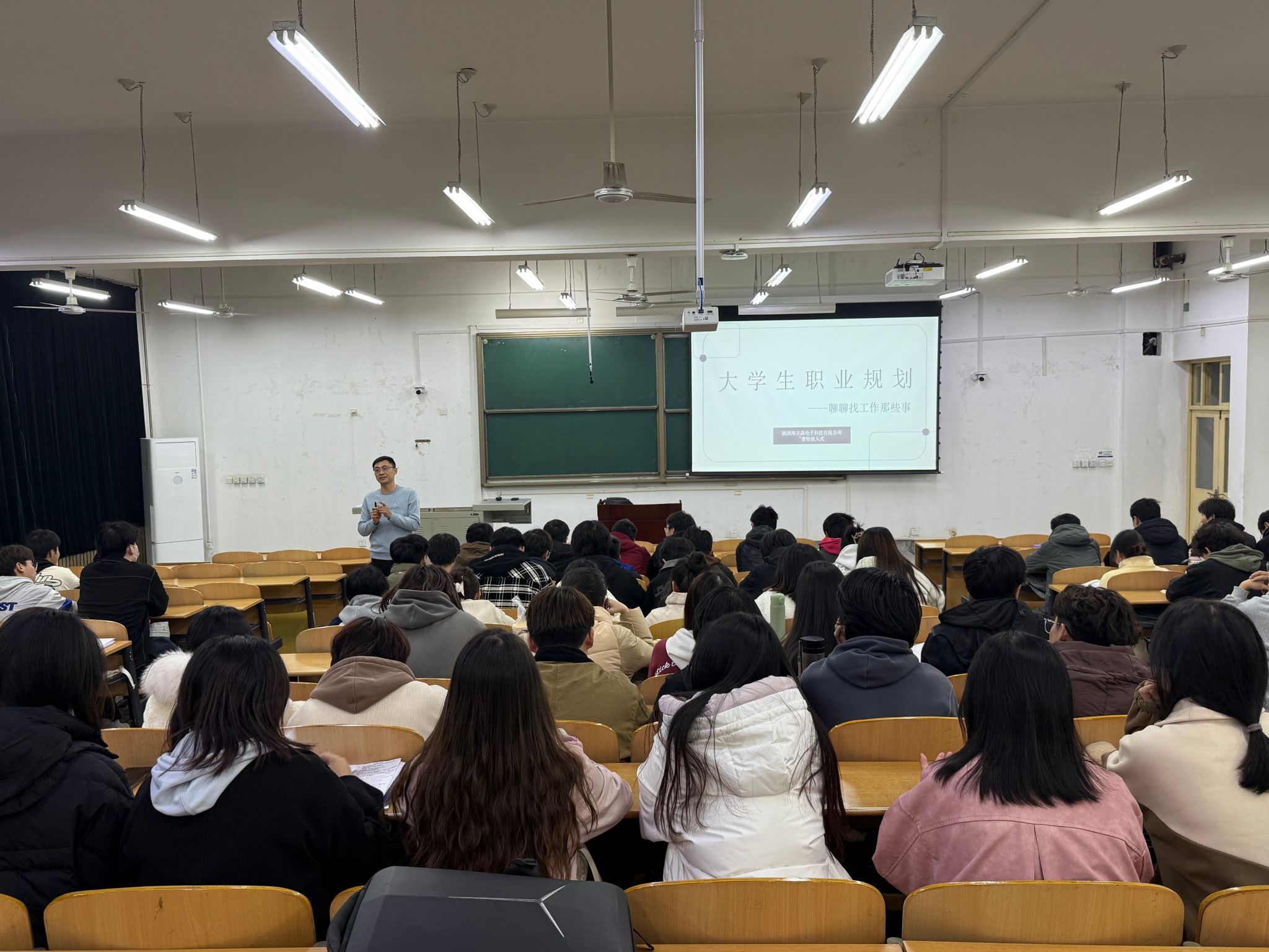 11月25日晚,公司在鄠邑校区博思楼B125教室召开2022级本科生职业规划指导讲座。陕西海尔森电子科技有限公司郭瑞老师担任主讲,2022级本科生约120人参加大会,会议由2022级辅导员姚谦主持。