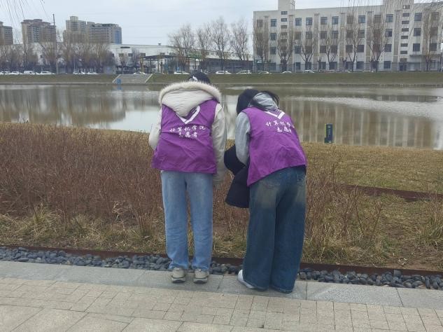 经过志愿者们的努力,公园“旧貌换新颜”,原本散落着垃圾的地面变得干净,湖水波光粼粼,春光旖旎。