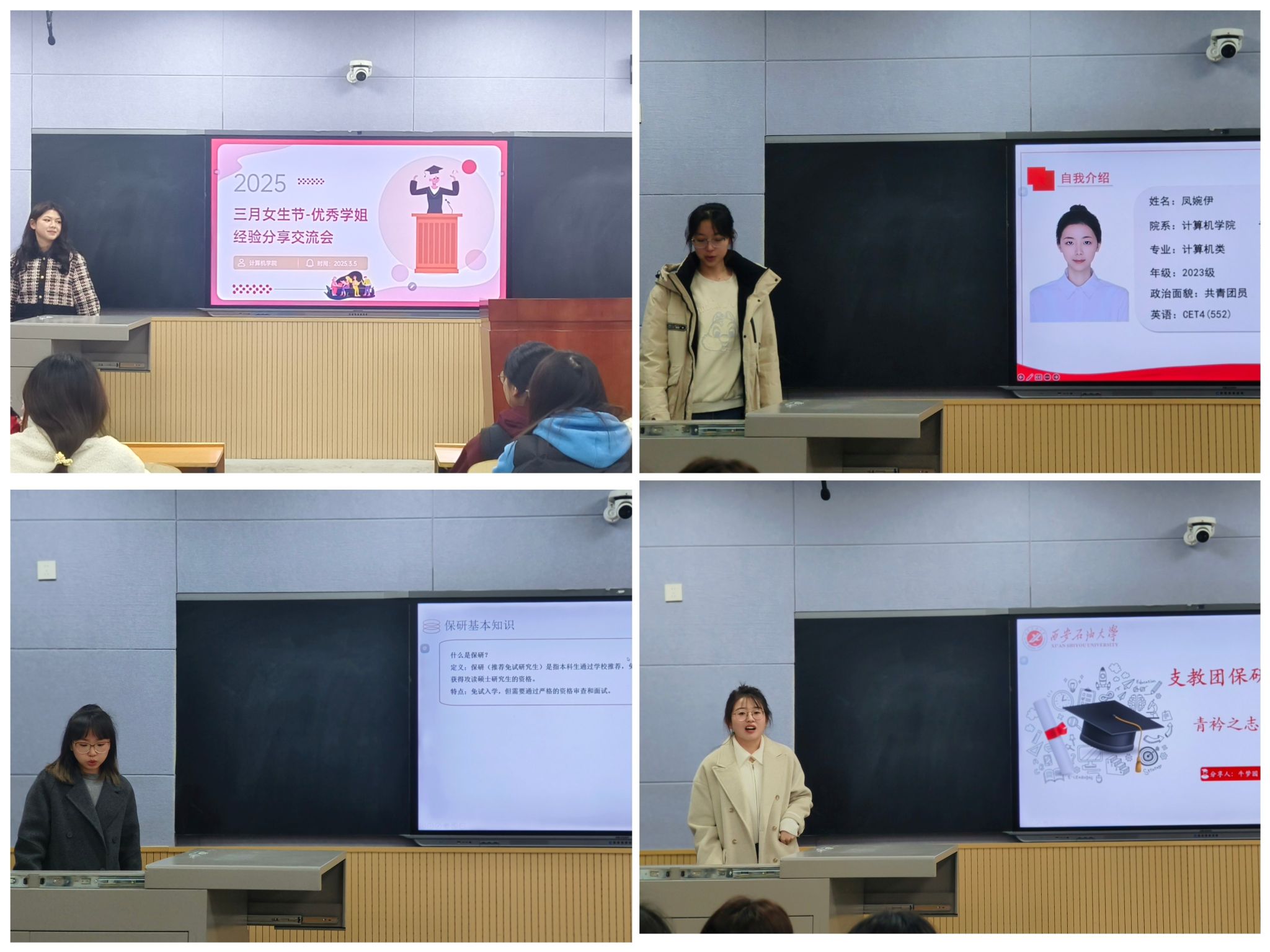 “她们的分享让我受益匪浅,尤其是听到她们如何克服困难、不断突破自我的故事,我深受鼓舞。”2023级本科生杨宇欣感慨道。活动中,同学们积极提问,与嘉宾互动交流,现场气氛热烈而温馨。通过这次活动,许多同学不仅收获了宝贵的经验,也找到了未来努力的方向。