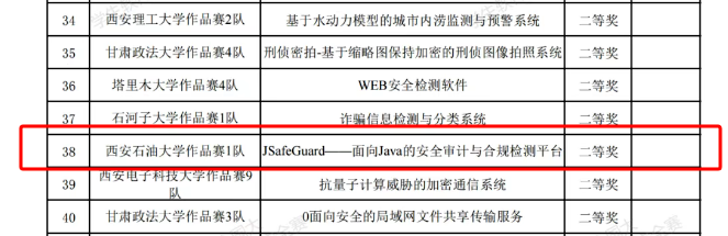 本次参赛团队由五名本科生组成,作品名称为《JSafeGuard —— 面向Java的安全审计与合规检测平台》,通过构建分层架构设计、漏洞复现技术、安全代码生成技术以及交互式用户界面,实现了Java漏洞的分类展示与详细演示、安全修复指导、审计要点明确以及安全编码规范推广等功能,为安全服务人员、研发人员和安全研究人员提供了一个高效、实用的Java安全研究与培训平台。攻防赛则是由四名本科生组成,团队结合先进的网络安全技术,通过相应安全工具和算法,成功模拟并防御了一系列复杂的攻击行为,并在规定时间内完成任务目标。