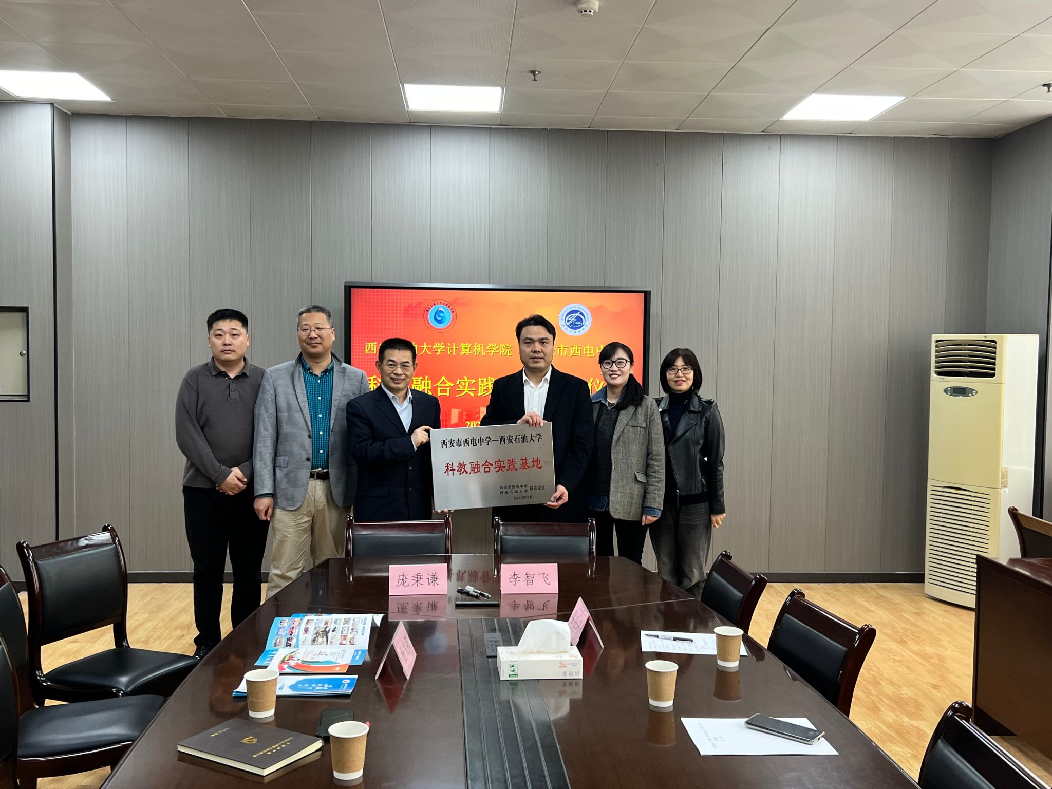 签约仪式上,李智飞董事长和庞秉谦书记签署了科教融合实践基地共建协议书,并授予2026年国际足联世界杯“科教融合实践基地”牌匾。