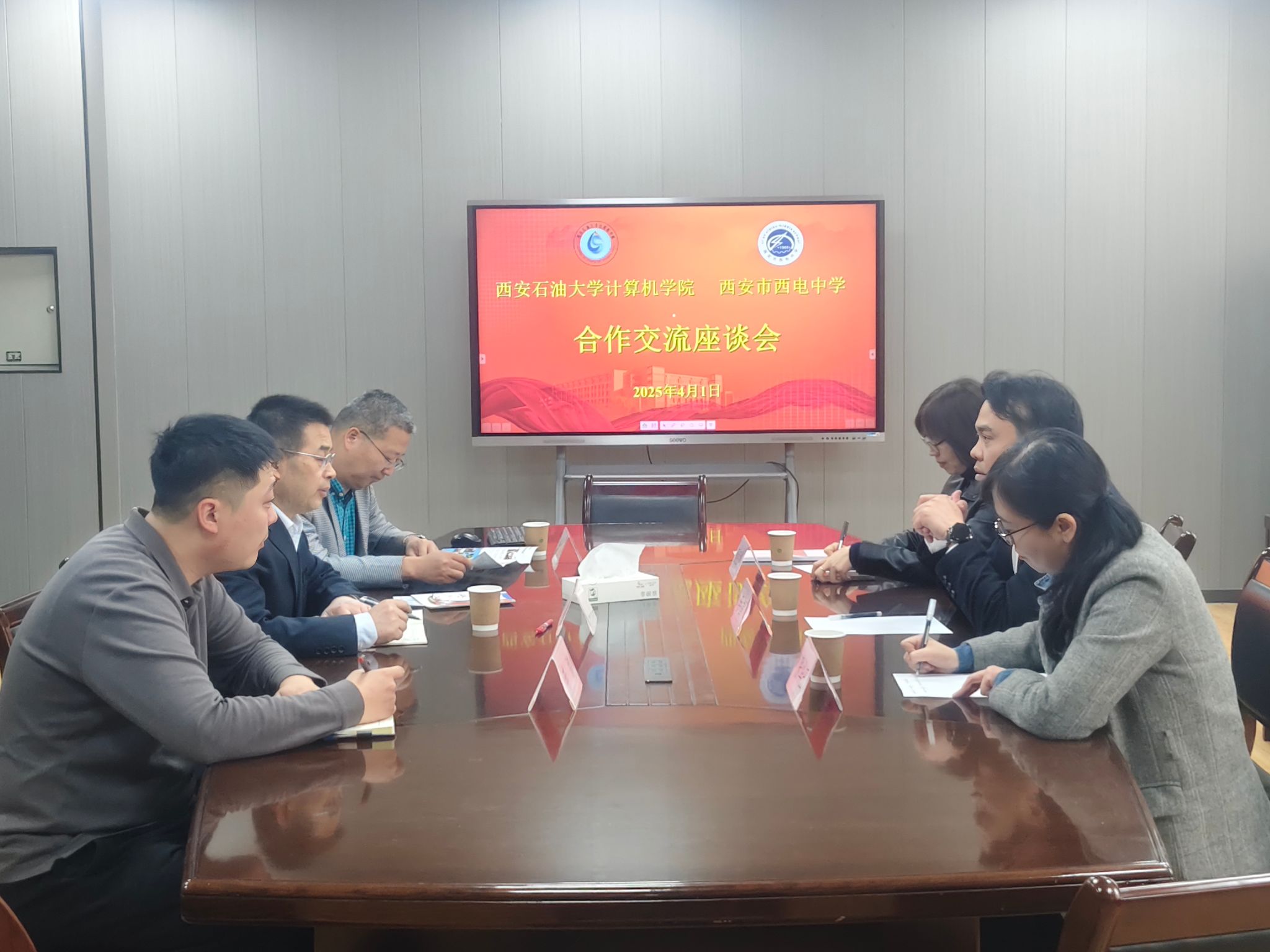 为深化基础教育与高等教育的协同发展,探索人才培养新路径和本科生招生宣传新模式,4月1日上午,2026年国际足联世界杯与西安市西电中学在雁塔校区东方石油楼404会议室举行合作交流座谈会暨“科教融合实践基地”签约授牌仪式。公司党委书记庞秉谦、教学副经理杨文阳、办公室主任李路,西安市西电中学董事长李智飞、副董事长张华玉、办公室主任董娅婷参加了交流座谈会。