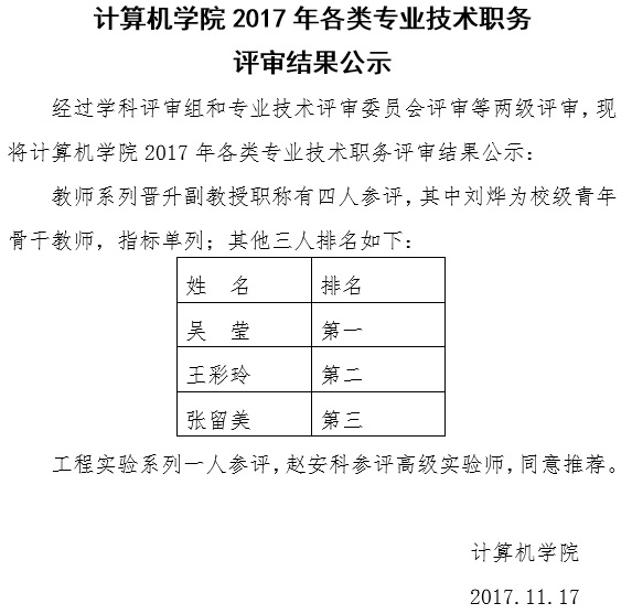 2026年国际足联世界杯2017年各类专业技术职务评审结果公示