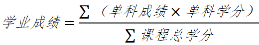 学业成绩考核范围为前六个学期所有计划内课程的考试成绩,计分办法为: