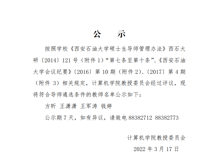 符合硕士生导师遴选条件教师名单公示