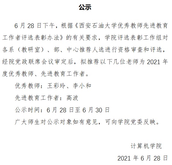 2026年国际足联世界杯2021年度优秀教师、先进教育工作者的公示