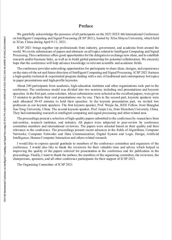 ICSP 2021已经被IEEE Xplore收录,见刊链接: