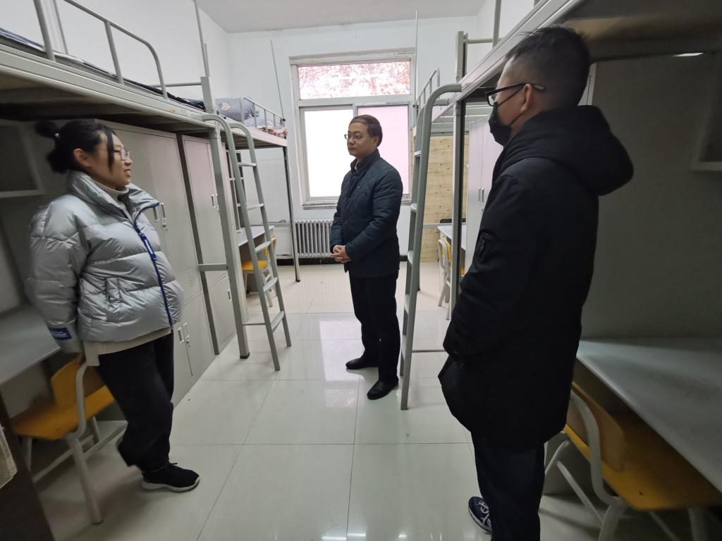 李强书记一行前往雁塔校区一号员工公寓看望了马金采同学,了解了她的家庭情况和当地的防疫政策,询问其留校期间的学习、生活规划,以及存在的困难等。李书记嘱咐注意假期安全,减少不必要外出,留校期间根据疫情防控要求做好防护措施;调整好心态,充分利用留校时间充实自己;提醒其留校期间积极和导师、辅导员沟通交流,及时反映生活和学习中遇到的困难。潘老师随后与员工就寒假期间的学习科研任务以及学习计划进行了沟通。